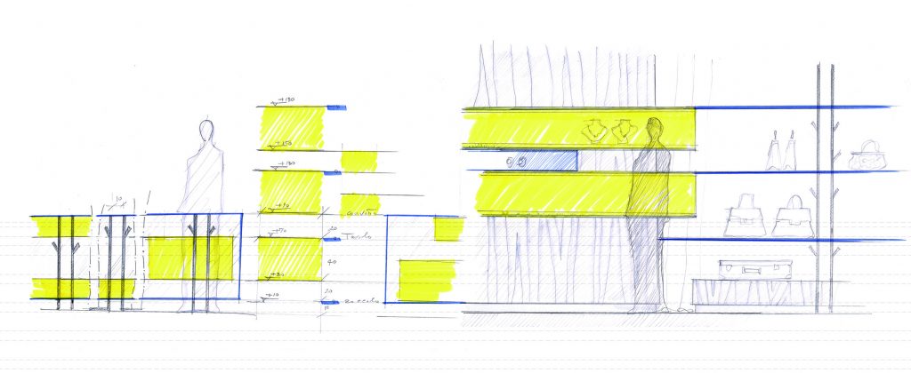 To valorise the warm and inviting atmosphere studied for the showrooms, the architects associated the brand’s blue with chromatic variations of natural wood. Soft drapery on the walls enriches the spaces of the boutiques, creating suggestive scenarios that vary in accordance with different needs and desired effects.