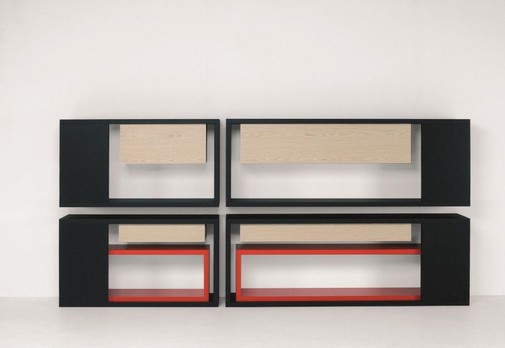 Realised in lacquered or natural oak, Mosaico is a flexible system that can be reinterpreted according to various needs, using some or all of the different elements horizontally or vertically. Its essentiality and geometric rigor have made it a contemporary classic: on the one hand timeless forms, on the other multiple uses and modularity to respond to modern rhythms and needs. The result is a highly versatile piece of furniture easily adaptable to various contexts.