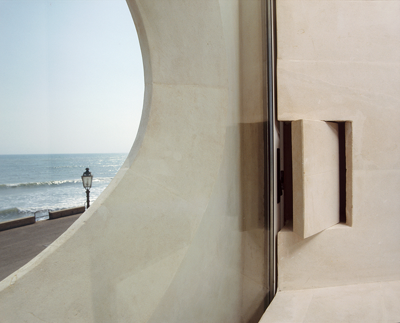 The renovation of an eighteenth century villa overlooking the sea in Sicily focuses on the dialogue between the contemporary language and the existing. It is the fruit of an attentive process of listening to the site and the requests made by the client. The project involved the construction of an additional floor of bedrooms and a stair connecting the different levels. The project is not only an interior, but also redesigns the historic façade by adding new geometric openings that redefine the relationship between the house and the surrounding landscape. One example is the large oval set into the deep wall of the master suite that frames the shades of blue of the sky and sea, becoming the perfect refuge for sitting and relaxing.