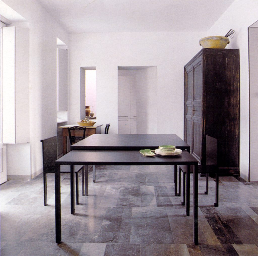 Some time in the 1960s the design world responded to the smaller dimensions of contemporary dwelling spaces by introducing the idea of stackable furniture. The theme was confronted by many of the great masters of design, though rarely has the overlapping of elements offered such a winning solution. Sotto e Sopra is two tables in one: with its ultra-thin dimensions and a perfect joint, one small table doubles in size simply by sliding out its twin and setting the pair beside one another. Yet we must not be fooled by its apparent simplicity: obtaining a similar result requires a meticulous design and the work of master contemporary furniture makers. The table is completed by the Bsedia chair, based on the sample principle of stacking and overlapping.